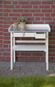 Creëer een fijne werkplek op het balkon. Deze oppottafel voegt niet alleen veel sfeer toe, maar biedt een comfortabel werkhoogte tijdens het oppotten en ompoten van planten. De meegeleverde zinken bak geeft voldoende ruimte om potgrond in te bewaren. Daarnaast geeft de plank eronder de mogelijkheid om tuingereedschap of andere benodigdheden op te bergen. Verder is hij zeer eenvoudig inklapbaar waardoor hij ruimtebesparend opgeborgen kan worden. Het kwalitatief hoogstaande hout zorgt voor een mooie afwerking en stabiliteit. Bovendien zorgt de fijne houtstructuur ervoor dat het glad aanvoelt ook door de jaren heen. Van nature is dit een weerbestendige houtsoort waardoor deze oppottafel uitermate geschikt is om buiten te staan.