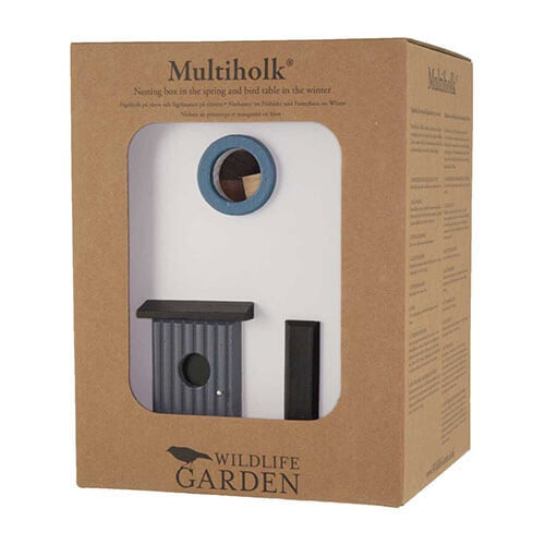 Dit Multiholk vogelhuisje/voederhuisje van het merk Wildlife Garden heeft de vormgeving van een landelijke cottage. Door dit bijzondere, rustieke ontwerp heeft u een uniek vogelhuis. De Cottage is zowel een nestkast als een voederhuis, door enkele simpele handelingen kunt u gemakkelijk tussen deze functies wisselen. Omdat dit vogelhuis twee functies heeft is deze evenzeer in de winter als in de zomer perfect te gebruiken voor tuinvogels. De Beige Cottage is gemaakt van FSC-gecertificeerd Lariks-hout en is beschilderd met milieuvriendelijke verf. Door het Lariks-hout is dit vogelhuis solide en bestand tegen weersinvloeden.De Beige Cottage ziet er aanlokkelijk uit en u zult een tal van vogels naar uw tuin trekken dit kunt u bevorderen door te variëren van vogelvoer*. Door het unieke ontwerp van de voederdispenser blijft het vogelvoer beschermd tegen regen en andere weersinvloeden en krijgen grotere vogelsoorten zoals de kraai geen kans. Het invlieggat is groot genoeg voor vogels zoals de mees.Tevens creeërt u door de sprookjesachtige vormgeving van dit vogelproduct zowel in de zomer als in de winter een gezellige sfeer in uw tuin uiteraard ook te gebruiken op uw patio, terras of uw balkon. Door de bijgevoegde bevestigingsmaterialen is dit vogelhuis gemakkelijk te monteren op een paal, aan de wand of aan een zwenkarm. Ook is deze door het materiaal licht van gewicht. De Beige Cottage is moeiteloos te reinigen en bij te vullen met vogelvoer. Doordat de vogel niet geheel in het voedergedeelte komt zal vervuiling van uitwerpselen nihil zijn. Het is raadzaam de nestkast schoon te maken na de broedperiode bijvoorbeeld schoonmaken in de herfst. Let op: De Multiholk kunt u bevestigen op de bijpassende paal of zwenkarm. Deze paal en zwenkarm worden niet standaard meegeleverd maar kunt u in ons assortiment vinden en los bij bestellen. Gebruikersvoordelen: Bestand tegen weersinvloeden Lange levensduur, FSC-gecertificeerd hout Rustiek ontwerp Aantrekken van vele tuinvogels Eenvoudig te bevestigen Onderhoudsvriendelijk Geen last van kraaien en andere grotere vogelsoorten Gemakkelijk bij te vullen met vogelvoer* Technische gegevens: Merk Wildlife Garden - Multiholk Afmetingen 20cm. breedte x 21cm. lengte x 28cm. hoogte Gewicht 1kg. Materiaal FSC-gecertificeerd Lariks-hout weerbestendig en milieuvriendelijke verf Capaciteit voer 2l. Geschikt voor buiten ja Waterbestendig ja Kleur beige / zwart / wit Bevestigingsmateriaal inbegrepen ja schroeven en zitstokjes Vogelvoer* inbegrepen nee *VogelvoerU vindt in ons Vogelvoer-assortiment u een ruime keuze uit soorten vogelvoer. Ook kunt u hier vogelvoer vinden wat specifiek op een vogelsoort is gericht, bijvoorbeeld de merel en het roodborstje. MultiholkWildlife Garden heeft verschillende Multiholk vogelhuisjes die allen beide functies hebben van nestkast en voederhuis. De Multiholk is er dus niet alleen in de variant Beige Cottage verkrijgbaar maar ook in andere kleuren en net wat andere uitstralingen. Om een beeld hiervan te krijgen kunt u bij de producten onder deze productinformatie kijken.