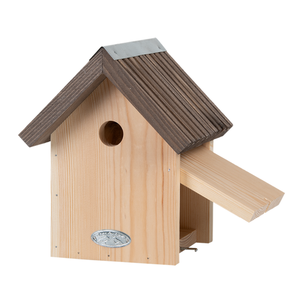 Deze nestkast is gemaakt van natuurlijke materialen en is ontworpen voor de pimpelmees. Behalve de pimpelmees kunt u ook de kuifmees, de glanskop, de matkop en de zwarte mees in deze kast verwachten. Een juiste plaats om de kast op te hangen is een rustige en enigszins beschutte plaats, dus niet pal in de zon of op de regenzijde, met een vrije aanvliegroute voor de vogel. Het najaar is de beste tijd om de nestkast schoon te maken. In de winter wordt het vogelhuis vaak door de vogels gebruikt als schuilplaats.