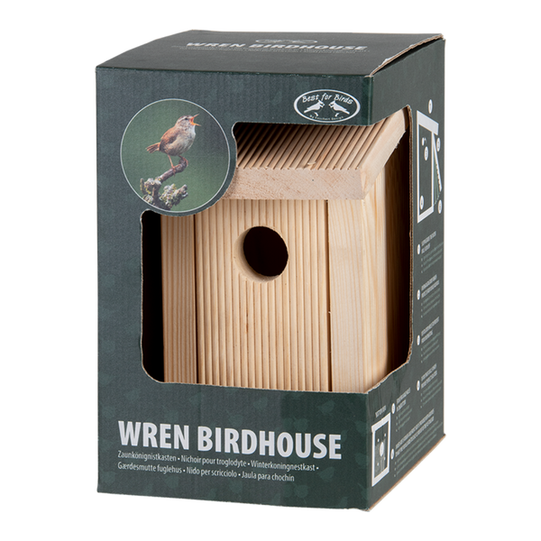 Dit vogelhuis is ontworpen voor het winterkoninkje. Het biedt een fijne plek om te nestelen en helpt daardoor de populatie in het gebied te behouden of zelfs terug te brengen. In de winter biedt het de vogels een plek om te schuilen tegen het slechte weer. De nestkast wordt geleverd in een full colour geschenkverpakking. 18mm dikke wanden die zorgen voor perfecte isolatie Schuin dak waardoor het water gemakkelijk wegloopt Overhangend dak beschermt tegen wind en regen Scharnierende voorzijde waardoor de nestkast gemakkelijk is schoon te maken Ventilatiegaten om oververhitting te voorkomen Vier drainagegaten in de bodem Geruwde binnenzijde en groeven in de voorzijde zodat de jonge vogels gemakkelijk uit de kast kunnen klimmen Zijwanden omsluiten de bodem ter voorkoming van wateroverlast L 15,4 x B 14,1 x H 21,2