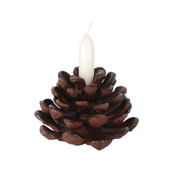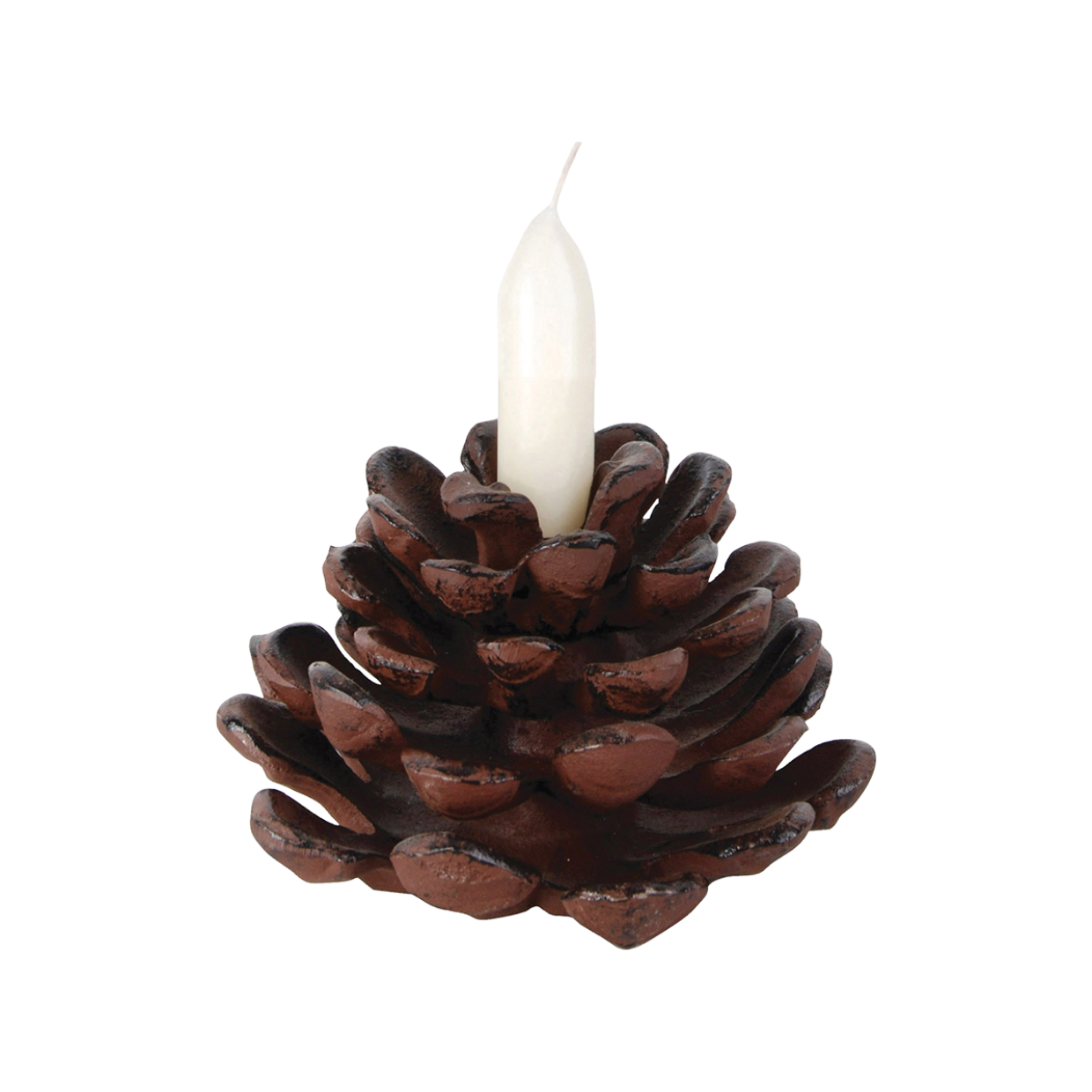 De structuur van een dennenappel leent zich zeer goed voor een kandelaar. De open schubben van deze kegelvrucht creëeren een bijzonder en sfeervolle houder van de kandelaar in het midden. Deze decoratief gietijzeren houder is met de hand gegoten volgens eeuwenoud vakmanschap en traditie.