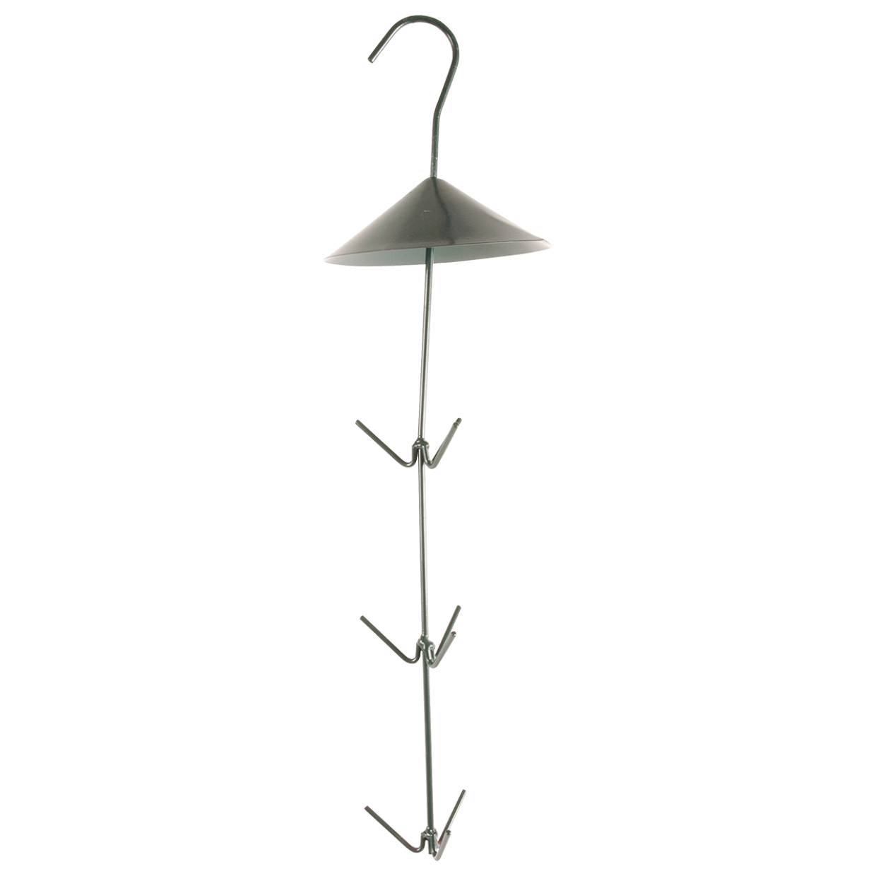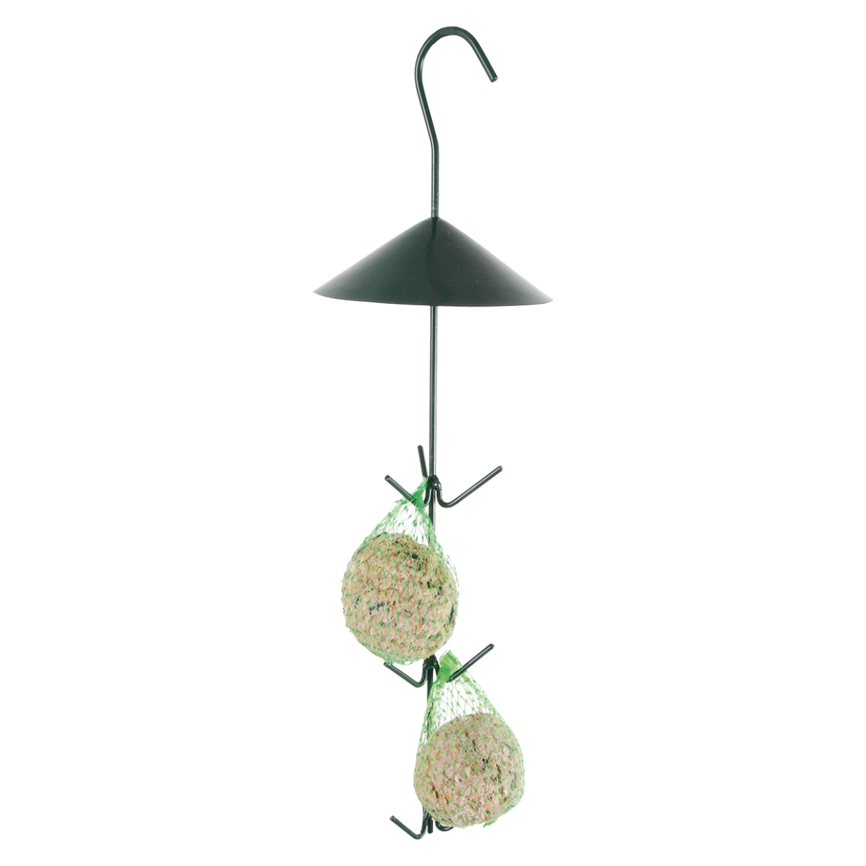 Deze vetbolhanger haak met dakje van het merk Best for Birds is een leuke, extra toevoeging voor de vogels in uw tuin. U kunt door middel van dit handig vormgegeven voedersysteem met zes haken vetbollen ophangen in uw tuin of op uw balkon. Het voedersysteem hangt u eenvoudig op door de haak aan de bovenzijde van het dakje en is zeer duurzaam en bestand tegen weersinvloeden omdat deze gemaakt is van gepoedercoat roestvrij staal. De vogelvoeder ziet er niet alleen voor u aantrekkelijk uit in deze mooie donkergroene kleur maar is tegelijk voor de vogels erg verleidelijk, u zult een tal van vogels naar uw tuin trekken dit kunt u bevorderen door te variëren van vogelvoer* op voedertafels in uw tuin.Een voedersysteem trekt veel vogels naar uw tuin, u kunt genieten van een variëteit van tuinvogels. Denk hierbij bijvoorbeeld aan de mees, de boomklever en de vink. Gebruikersvoordelen: Gepoedercoat roestvrij staal Haken voor zes vetbollen zodat u niet iedere keer aan hoeft te vullen Aantrekken van verschillende tuinvogels Natuurlijke, donkergroene kleur Technische gegevens: Merk Best for Birds Esschert design Afmetingen ø 11 x 42 cm. Materiaal gepoedercoat roestvrij staal weerbestendig Geschikt voor buiten ja Waterbestendig ja Kleur donkergroen Bevestigingsmateriaal inbegrepen? n.v.t., de vogelvoeder heeft een haak waarmee u deze eenvoudig aan een voedersysteem, haak of tak op kunt hangen Vogelvoer* inbegrepen? nee *VogelvoerU vindt in ons Vogelvoer-assortiment u een ruime keuze uit soorten vogelvoer. Ook kunt u hier vogelvoer vinden wat specifiek op een vogelsoort is gericht, bijvoorbeeld de merel en het roodborstje.