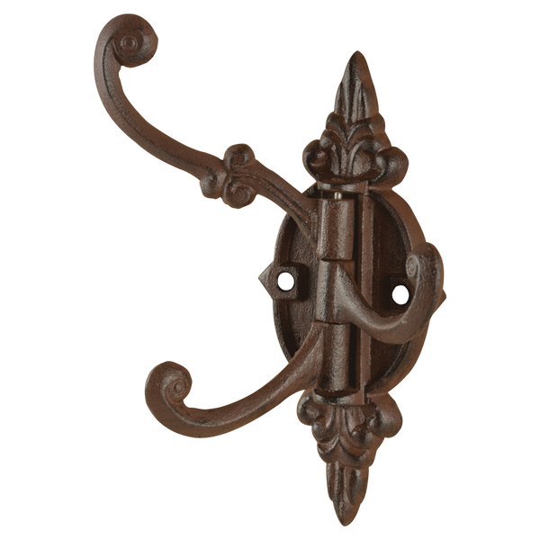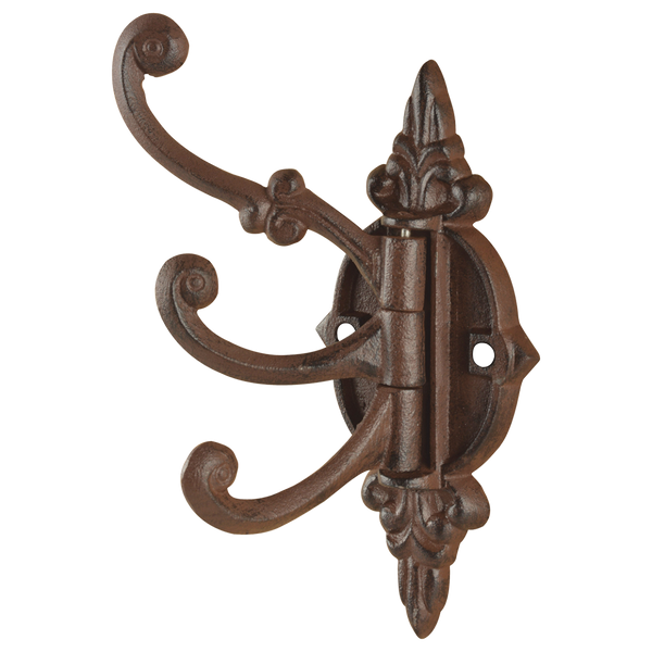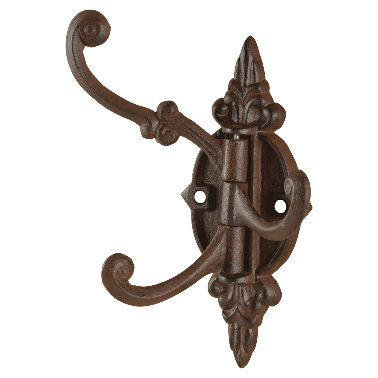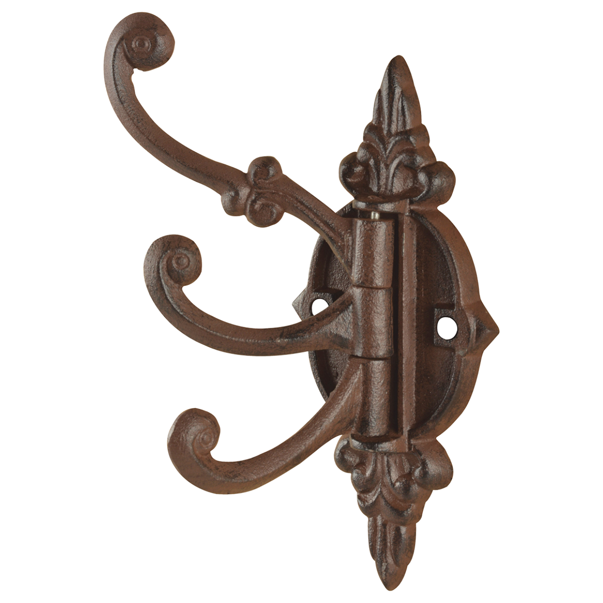 Op de drie verschillende lengtes van de haken die ook nog individueel te stellen zijn, kan van alles opgehangen worden. Deze decoratief gietijzeren draaibare haak is met de hand gegoten volgens eeuwenoud vakmanschap en traditie.