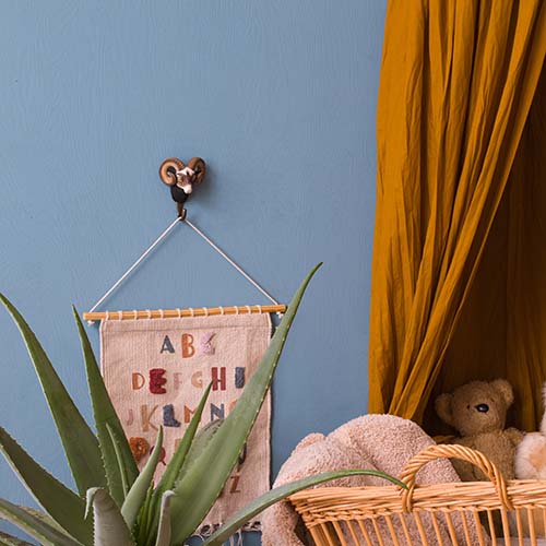 De ramhaak is een speels en praktisch interieurdetail waar je dol op bent. Hier kun je alles ophangen, van de kamerjas tot schooltassen of hondenriemen terwijl je geniet van de ingewikkelde details van een prachtig knutselwerk. De ram heeft een aangenaam neutraal kleurenpalet dat bij veel stijlen past en is een charmant woonaccessoire dat zowel door jonge als volwassen designgoeroes wordt gewaardeerd.