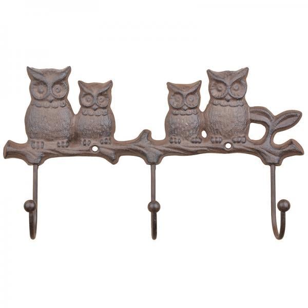 Vier uilen hebben plaatsgenomen op een tak. Deze rustieke gietijzeren haak is per stuk met de hand gegoten volgens eeuwenoud vakmanschap en traditie.•3 haken ProductspecificatiesMateriaal: Gietijzer, metaalFormaat: 27,2x5,8x15,7 cmGewicht: 0.53 Kgsku: TT198