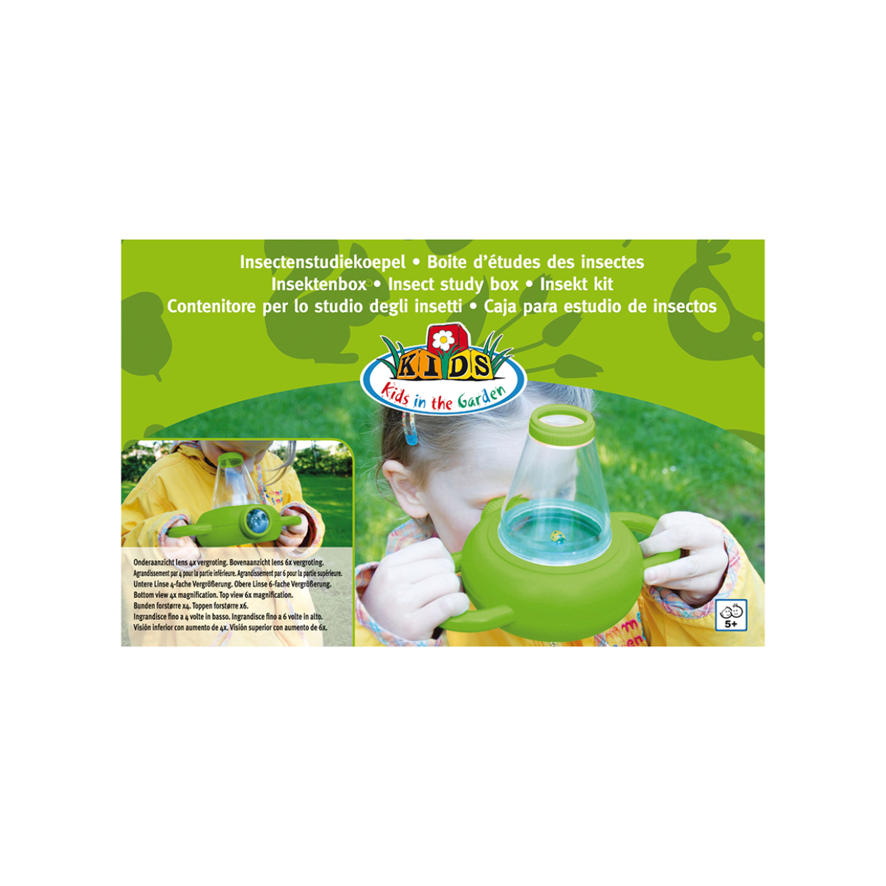 De natuur zit vol verrassingen en biedt allerlei avonturen. Met deze tweezijdige studiekoepel ontdek je de natuur op een wel een heel bijzondere manier en kun je een object vanuit twee verschillende hoeken bekijken, boven-en onderkant. Kleine objecten zoals insecten, gras en bladeren kunnen in de lade worden geplaatst en bekeken worden van beide kanten. Bovendien kunnen er twee kinderen op hetzelfde moment een object bekijken. Door van lensstuk over te schakelen ben je in staat om de boven- en onderkant van het object te bekijken. Als eerste bestudeerobject is er een plastic spin meegeleverd. • bovenaanzicht lens 6x vergroting • onderaanzicht lens 4x vergroting • inclusief plastic spin • verpakt in full colour giftbox