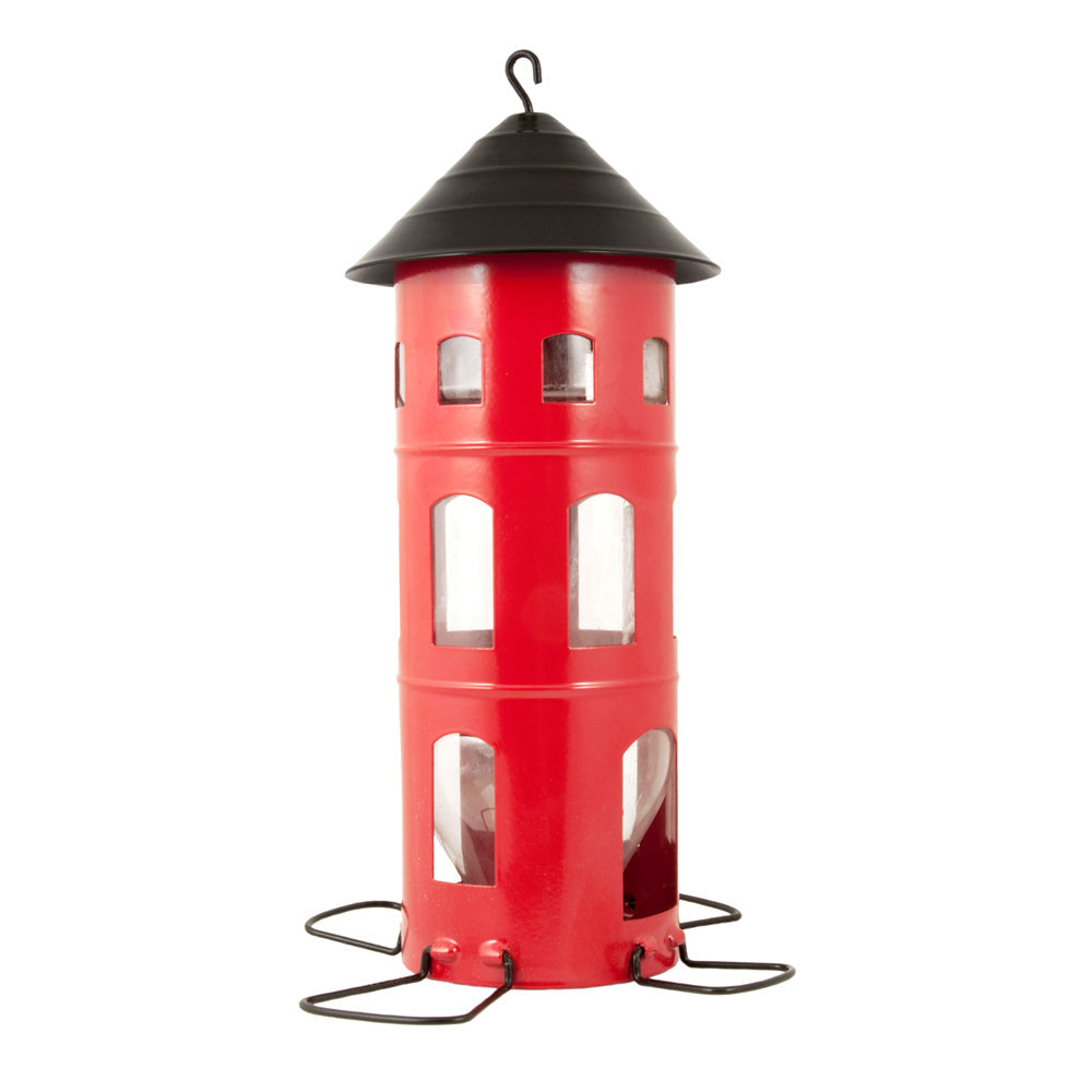 Special geschikt voor vogelzaad Met een plastic inzetkoker en een speciaal ontwikkeld voederraam is deze voederautomaat uitermate geschikt voor het voeren van vogelzaad. Het is ook mogelijk om de inzetkoker uit te nemen om zo appels en vetbollen te kunnen aanbieden. Bijvullendoor het dakje eraf te schroeven. Voorkom ongenode gasten Door het ophangen van de voederautomaat wordt hij moeilijk bereikbaar voor muizen en ratten. Ook is het moeilijk voor kraaien en kauwen om bij het voer te komen. Zitbeugels voor vinken, mezen en spreeuwen Het product wordt geleverd met een draad voor makkelijke bevestiging in een boom, aan een spijker of een haak. Zitbeugels in twee afmetingen worden bijgeleverd. Gewicht: 0,4 kg Kwaliteit: Gepoederlakt staal, Kunststof inzetkoker Afmeting: 110 x 110 x 255 mm Hoedanigheid: 1,2 l Montage: Ophangkoord .