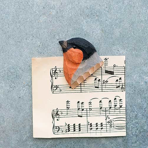 De goudvinkmagneet is een schattige decoratie voor op de koelkast.