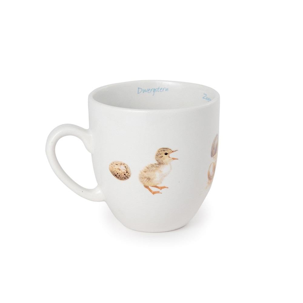 De mok Dwergstern maakt deel uit van een serie van 6 verschillende Waddenvogelmokken. Daarnaast zijn er nog 6 verschillende mokken in de serie Weidevogels verkrijgbaar. OntwerperElwin van der Kolk, de Nederlandse bioloog en natuurschilder, werd al op jonge leeftijd gefascineerd door de natuur om hem heen. Een groot deel van zijn jeugd bracht hij door met vogels kijken en vogels tekenen. In zijn tekeningen probeert hij de natuur op zo’n manier vast te leggen dat de kijker aangemoedigd wordt om de natuur te bewonderen en te beschermen. Deze modern vormgegeven mok is gemaakt van New Bone China porselein. Dit materiaal wordt in één keer gebakken op een temperatuur van 1250-1300° Celsius. Het toegevoegde beenderas geeft het materiaal een lichte crèmekleur en maakt het licht doorlatend. Bovendien is het heel sterk materiaal en kan het zelfs in een hele dunne vorm geproduceerd worden. New Bone China is de laatste jaren zeer populair geworden dankzij deze eigenschappen en de gunstige prijs. Diameter 8,4 cm Hoogte 8,3 cm Materiaal Porselein