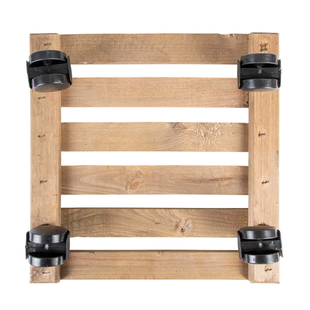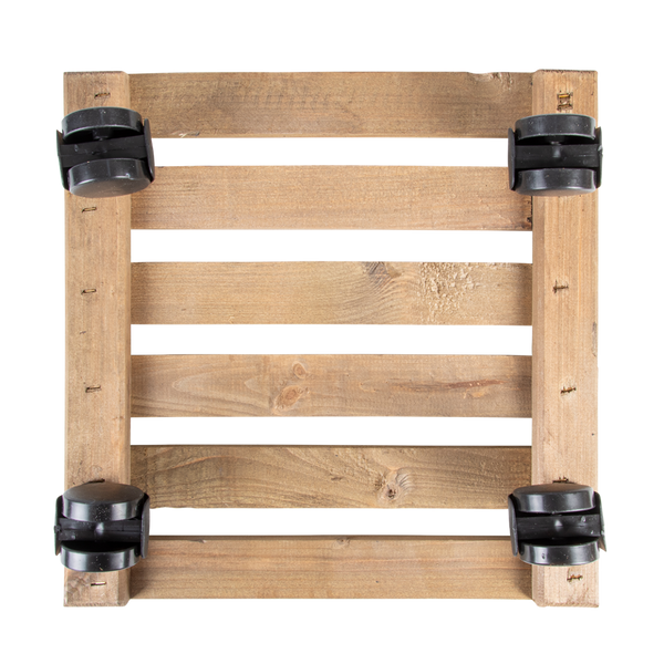 Houten meubelen en accessoires werden jarenlang gebruikt in en rond boerderijen en zijn tegenwoordig weer helemaal in. Deze vierkante plantentrolley met vier zwenkwielen is perfect voor het verplaatsen van zware plantenbakken of planten zowel binnen als buiten.