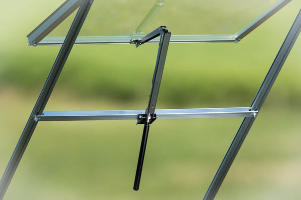 Het luchten van de kas is van levensbelang. De Automatic Opener Green draagt daarvoor zorg, ook als u even niet in de buurt bent. Door reactie op de temperatuur in de kas wordt het raam automatisch geopend en sluit het wanneer nodig. De Automatic Opener Green heeft een drukkracht van 6 kg en is daarmee geschikt voor dakramen in een enkele uitvoering. Het frame van de raamopener is groen gecoat. Inclusief vervangbare cilinder De meegeleverde cilinder is verantwoordelijk voor het functioneren van de raamopener en heeft een levensduur van enkele jaren. Nadien kan een cilinder los vervangen worden. Voor behoudt van de werking van de cilinder wordt geadviseerd deze gedurende de vorstperiode te isoleren of binnenshuis te bewaren. Materiaal: Staal Garantie: 2 jaar