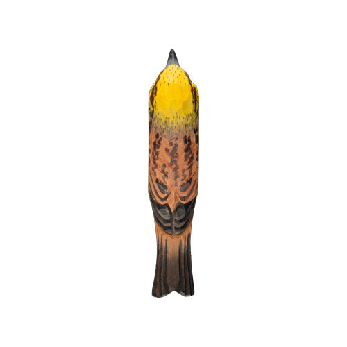Decoratieve houten servetringenBent u op zoek naar een decoratief detail om iets extra's toe te voegen aan uw eettafel? De servetring yellowhammer van Wildlife Garden is met de hand uit lindehout gesneden en met de hand beschilderd met milieuvriendelijke verf. Leg op elk bord één geelgors of meng verschillende soorten. Over de geelhamerDe geelhamer heeft een langwerpig en glad musachtig uiterlijk. Het verenkleed is gestreept in grijsbruin met een felgele kop met een roodbruine vlek over de staart. De geelgors maakt een nest van gras en andere materialen en plaatst het vaak in lage struiken of zelfs direct op de grond.