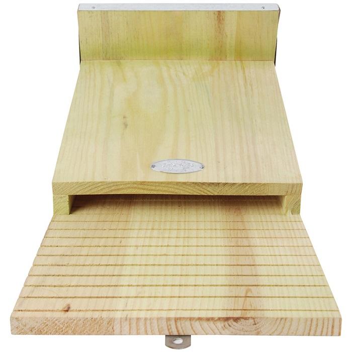 Dit vleermuishuisje van het merk Esschert Design is gemaakt van FSC-gecertificeerd vurenhout en heeft een zinken dakje. Door het hoge kwaliteit hout is dit vleermuishuis solide en bestand tegen weersinvloeden. Het vleermuishuisje is voorzien van een speciale ingang zodat de vleermuizen aan de onderkant het huisje kunnen betreden en verlaten. Het vleermuishuisje dient overdag als woonruimte voor verschillende soorten vleermuizen. Het is voor vleermuizen in Nederland best lastig om een goede woonruimte te vinden. Huizen van tegenwoordig zijn beter gebouwd en bevatten goed isolatie materiaal waardoor het voor de vleermuis onmogelijk is naar binnen te treden. Wij raden u aan het vleermuishuisje aan de gevel van uw huis of schuur op te hangen, op een beschutte plaats. Denk hierbij aan een plaats aan de gevel zodat het huisje niet direct in het zonlicht hangt. Gebruikersvoordelen: FSC-gecertificeerd vurenhout Natuurlijke uitstraling Aantrekken en behouden van verschillende soorten kleine vleermuizen in uw tuin
