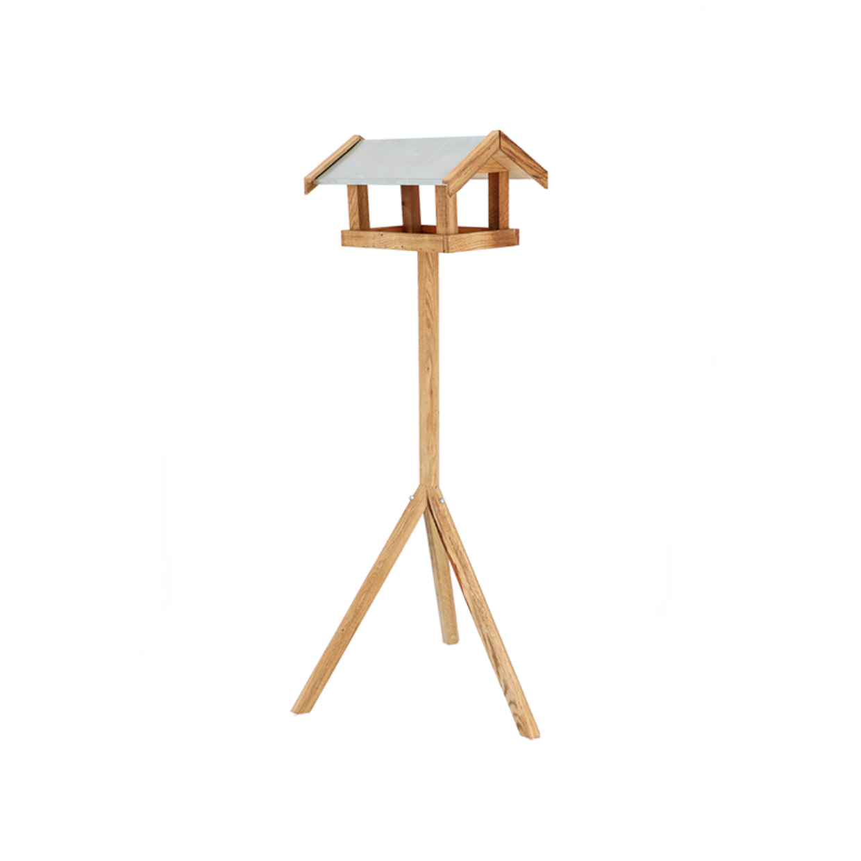 Lok vogels naar de tuin met deze rechthoekige voedertafel. De voertafel is gemaakt van eiken, heeft een stalen dak en wordt geleverd inclusief voet.