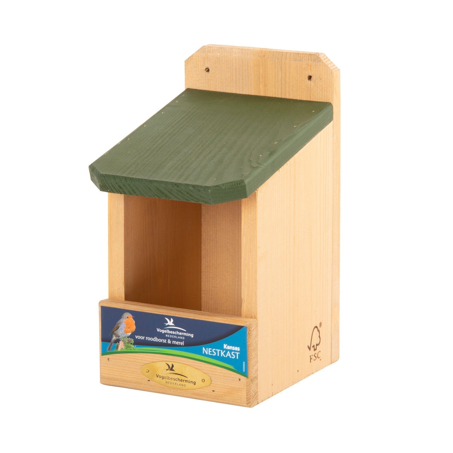 Deze halfopen nestkast Kansas is speciaal ontworpen voor de merel, roodborst en witte kwikstaart. De nestkast is ontwikkeld in samenwerking met de Vogelbescherming Nederland en voldoet daardoor aan alle wensen van onze vogelvriendjes. Deze nestkast is gemaakt van FSC hout.Deze halfopen nestkast Kansas is speciaal ontworpen voor de merel, roodborst en witte kwikstaart. De nestkast is ontwikkeld in samenwerking met de Vogelbescherming Nederland en voldoet daardoor aan alle wensen van onze vogelvriendjes. Deze nestkast is gemaakt van FSC hout.