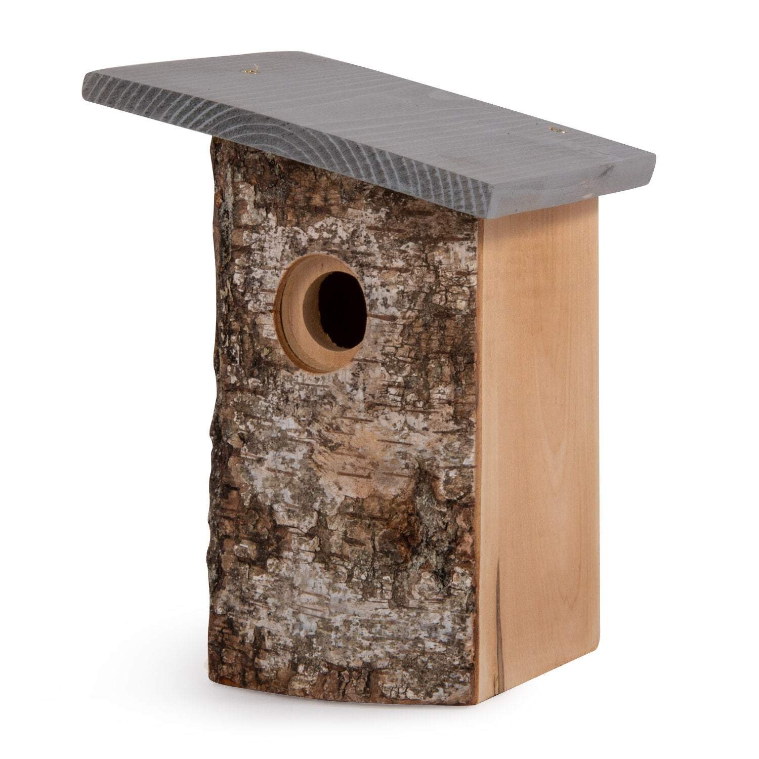 Nestkast Kopervik van CJ Wildlife heeft een mooie natuurlijke uitstraling door de berken boomschors aan de voorkant. Met een invliegopening van D 32 mm is deze nestkast uiterst geschikt voor koolmezen.