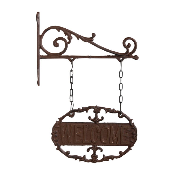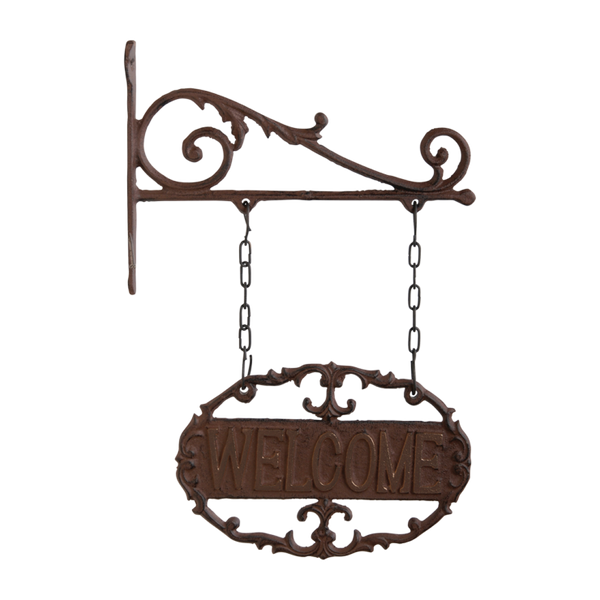 Heet gasten welkom met dit "Welcome" uithangbord die aan de muur bevestigd kant worden. De decoratief gietijzeren hanger is met de hand gegoten volgens eeuwenoud vakmanschap en traditie.